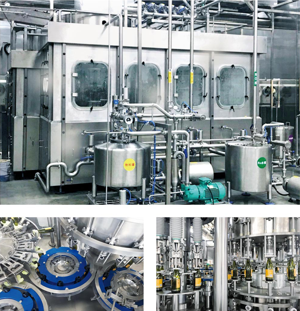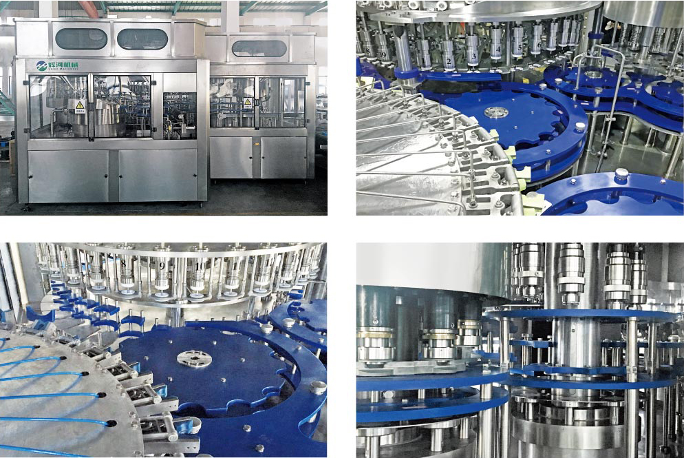 | Application: Bottled water, tea, juice, functional drink, carbonated beverage etc. Applied Containers:Glass or aluminum-made bottles with various capacities and shapes. Applied bottle caps:Screw cap (Al), crown cap and three screw cap etc. Filling system:Mechanical valve or flow-meter valve. Capacity:5000-48000BPH Product's scope:Decaser, bottle washer, Rinsing-filling-capping machine, purification system, cap elevator, cap sorter, bottle warmer/cooling tunnel, filled bottle conveying system, labeling machine, carton/film packing machine, palletizer, electric control, engineering design and construction. |
